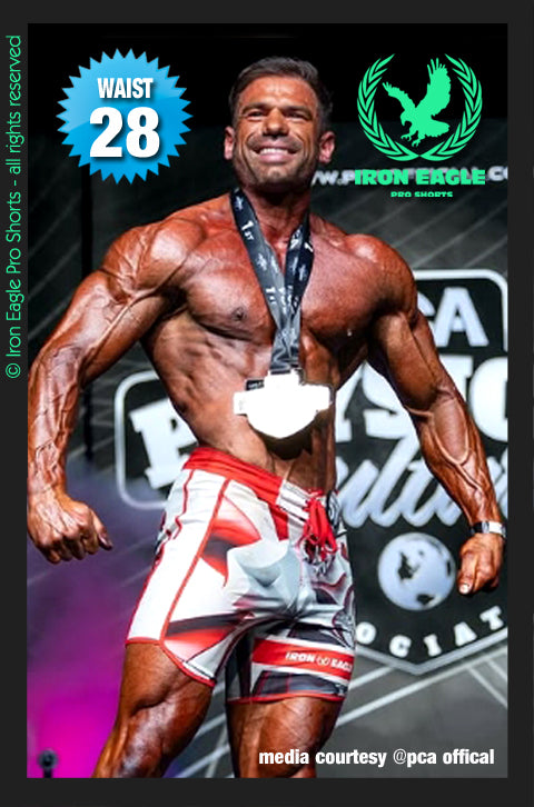 Our Iron Eagle Pro Physique Shorts are meticulously crafted to fully comply with the latest IFBB Pro League regulations, featuring a precise 15-inch length that meets the league’s updated requirements.