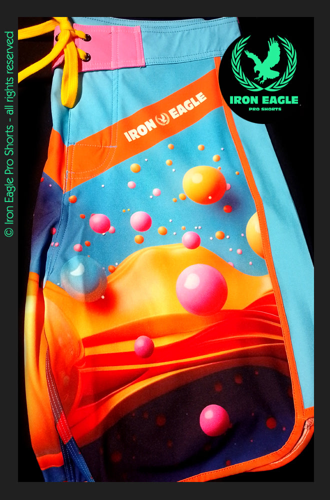 Colour: Aqua, Bubblegum Pink & Orange funky glossy orb pattern