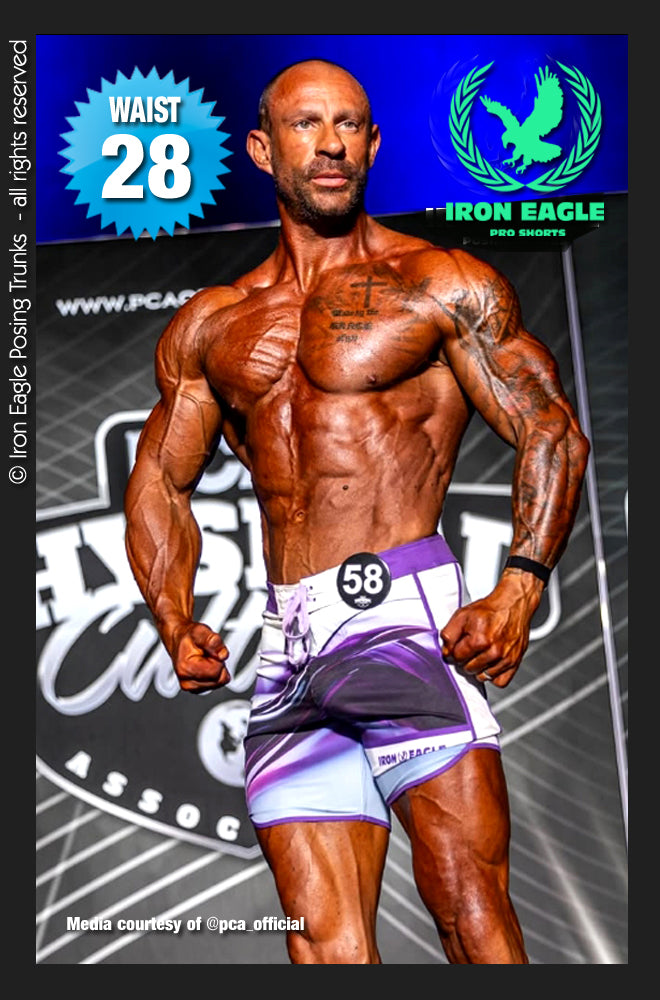 Our Iron Eagle Pro Physique Shorts are meticulously crafted to fully comply with the latest IFBB Pro League regulations, featuring a precise 15-inch length that meets the league’s updated requirements.